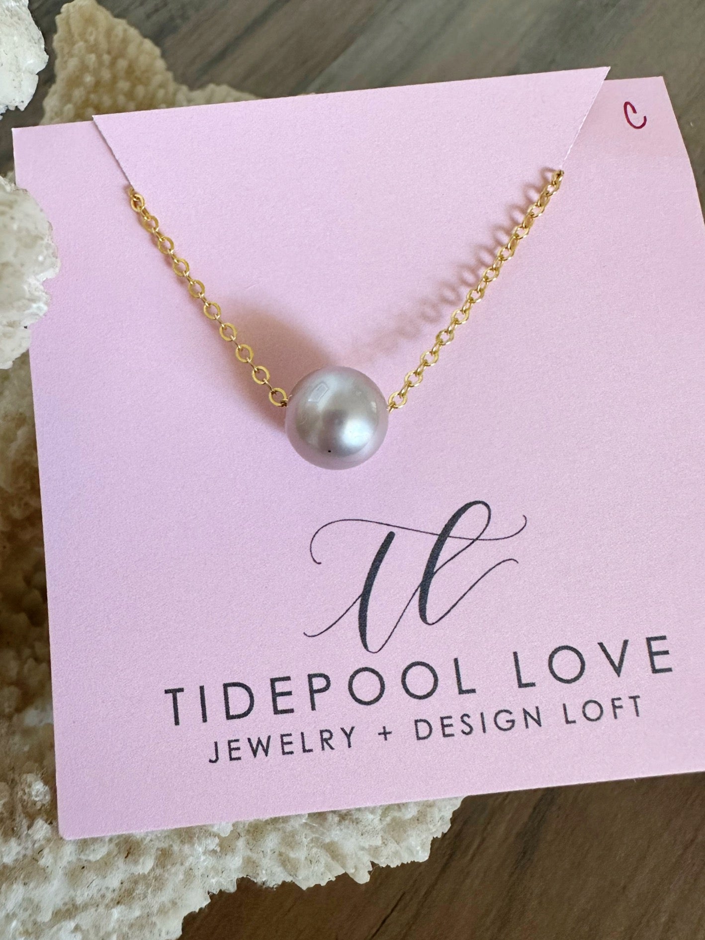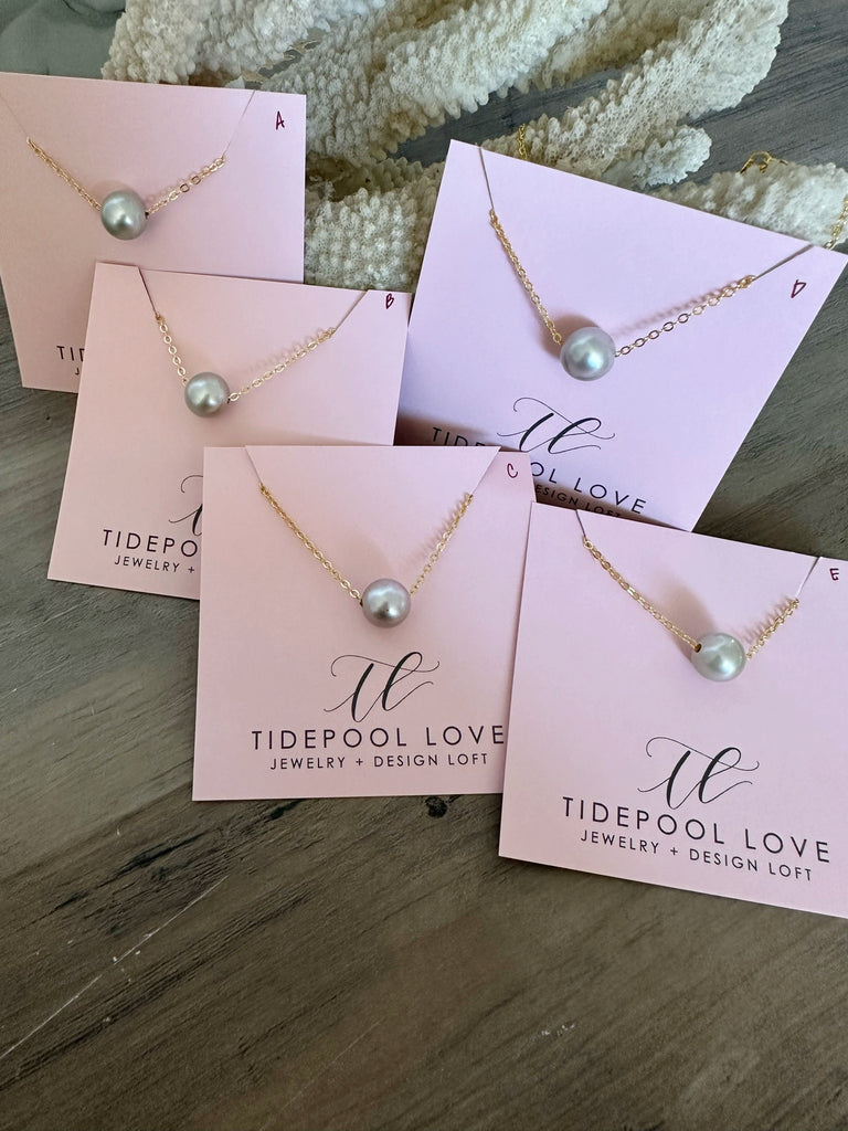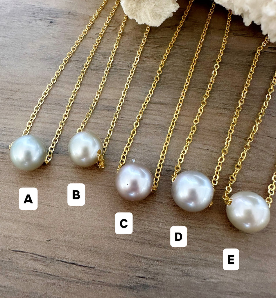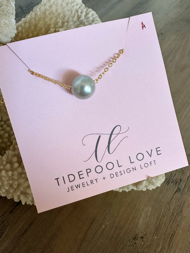 The natural light or white Tahitian Pearl is rarely seen today, as Pearl Distributors and Pearl Dealers scoop up the light Tahitians to dye them. Thus, the natural white Tahitian Pearl is now coveted by all Tahitian Pearl enthusiasts who appreciate the deep luster and classy white hues. All pearls are round, flawless, Grade AAAA beauties and float along an adjustable 16-18" 14kgf chain.
