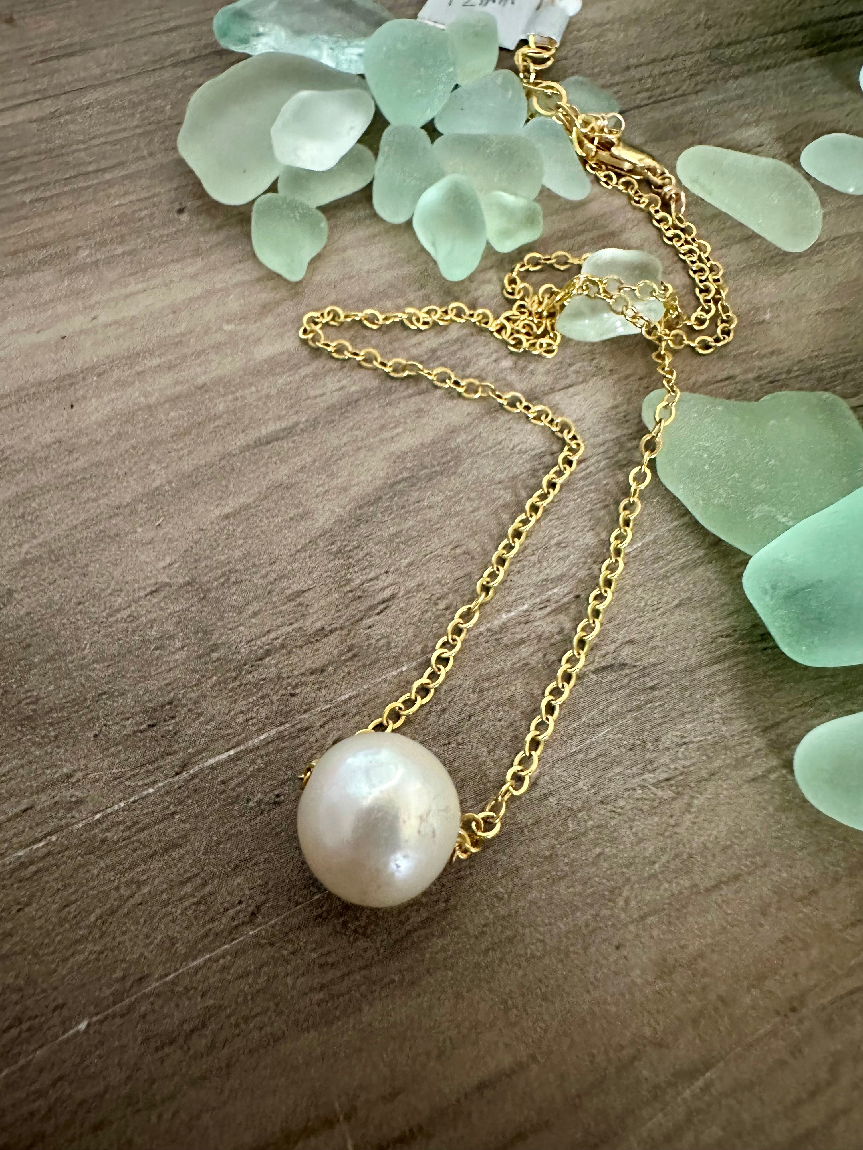 12mm, perfectly round and Grade AAAA! This natural White Edison Freshawater Pearl is perfectly round and flawless. This natural Pearl floats along a 14kgf chain (adjustable 16-18") and the necklace photographed is the exact one you will receive!!